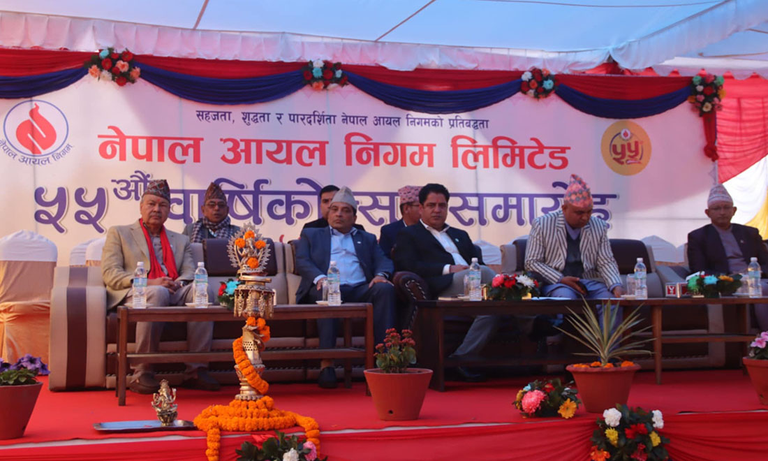 काठमाडौं । नेपाल आयल निगम लिमिटेडका कार्यकारी निर्देशक चण्डिकाप्रसाद भट्टले निगम १० अर्ब नाफामा रहेको बताएका छन् । शुक्रबार नेपाल आयल निगम लिमिटेडको ५५ औँ वार्षिकोत्सव कार्यक्रममा बोल्दै उनले यस्तो बताएका हुन् ।