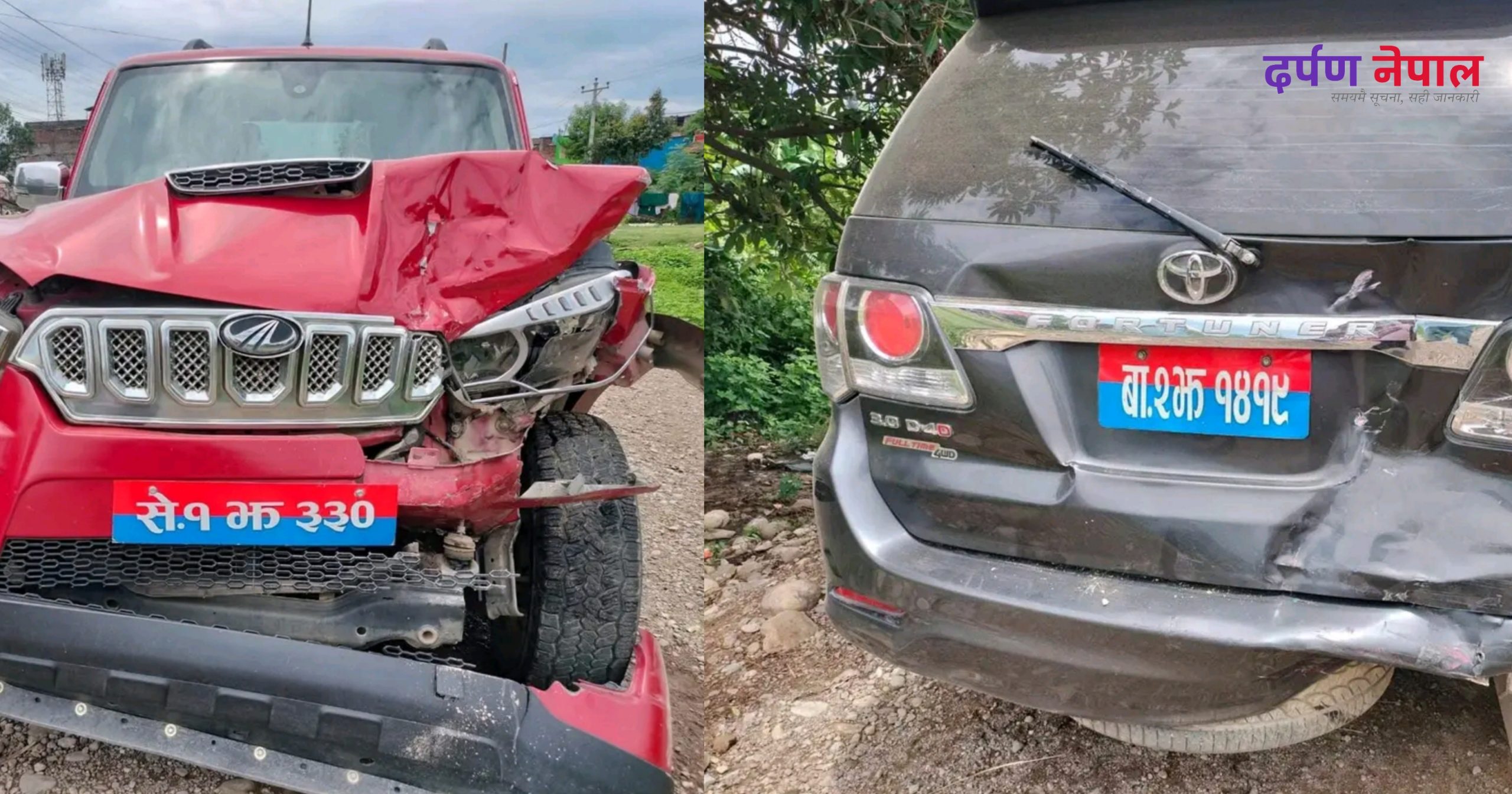 सार्की चढेको से. १ झ ३३० र पाल चढेको बा.२ झ १४१९ नम्बरको गाडी ठोक्किएको हो ।